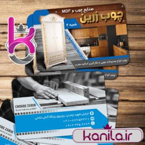 کارت ويزيت صنایع چوب و MDF زرین بصورت دورو و افقي طراحي شده.